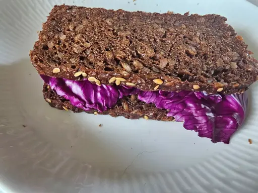 Red cabbage between slices of rugbrød is DEFINITELY the healthiest “whatever I have left at the end of the month when there’s no money left” lunch I’ve ever had and actually surprisingly good! 😄