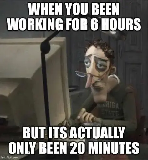 Sometimes I’m trying to fix a bug for 20 mins but it’s actually been 6 hrs