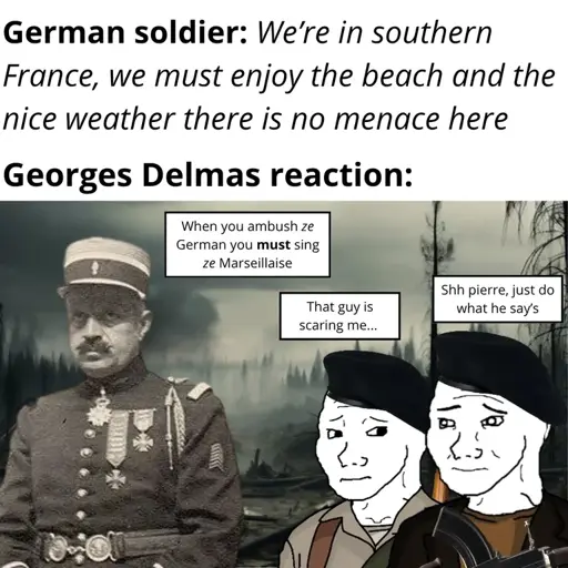 On one occasion an SS convoy was severely damaged during an ambush; afterward an entire convoy was annihilated by his men when, during the engagement, one of Delmas’s men, galvanized by the recent victories, sang La Marseillaise while shooting with his machine gun.