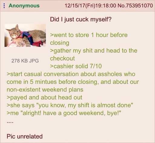 I think the “oh, fuck, that was an invitation!” moment several minutes/hours after the fact is one of the most universal moments.