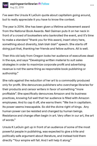 Ursula LeGuin was an incredible person and, although she did live a long life, her death was still a huge loss.