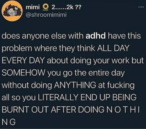 To be blunt, the stigma of typicals around adult ADHD is so severe that for most people I just tell them I have an executive function disorder.