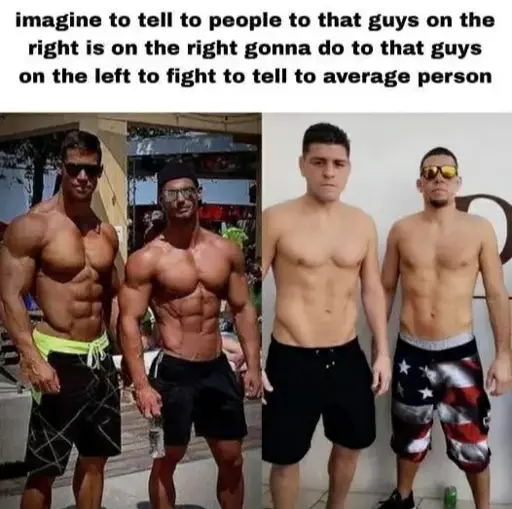 Imagine telling the average person what the guys on the right (Diaz brothers of MMA fame) would do to the guys on the left (jacked bodybuilder bros who likely have never stepped foot into a fighting gym).