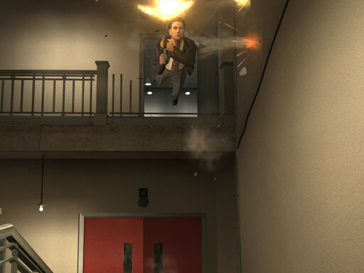 Today’s game is Max Payne 2. I discovered the -developerkeys flag so you know i had some fun with that while playing. I did this shot of Max diving over a landing which i really like. My steam keeps doing this weird bug where it crashes and reopens so i only got this shot and one of him nearly hitting the ground, but i still like how it came out. It’s accurate too because every time i hit this staircase i do the Dive. Is it a bad move? Yes. Does it look sick? Definitely.