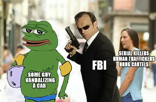 minus-squareslackassassin@sh.itjust.workslinkfedilinkarrow-up1·10 months agoOr this is a Pepe meme ass shitpost and it’s the serial killers humping the cars.
