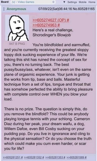 Removing the blindfold can only at best ruin the prize you’ve already got. You remove the blindfold and find out the best beej in the world comes from Supreme Fellator Donald J. Trump? No ma’am, there is no coming back from that. Leave it on.
