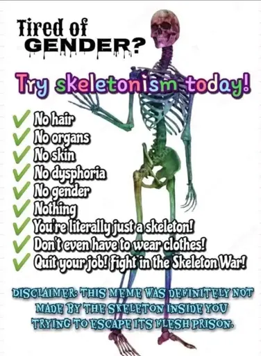 minus-squareover_clox@lemmy.worldlinkfedilinkarrow-up2·4 days agoI live in the Catacombs of Paris, all my furniture is made of bones…