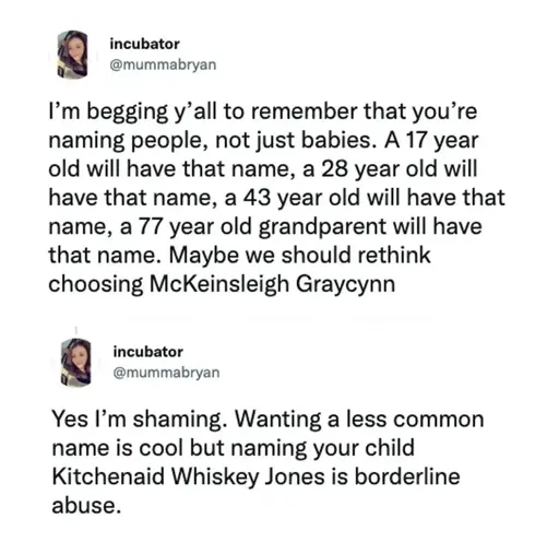 - They shall not need to spell their name every time they tell it to somebody. This implies a few things, like choosing an established first name people have heard before rather than making something up, and using the common spelling of that name.