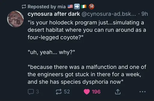Man, whats the furry % of VRC users? There’s gotta be a ton of folks who identify more with their Fursona at this point.
