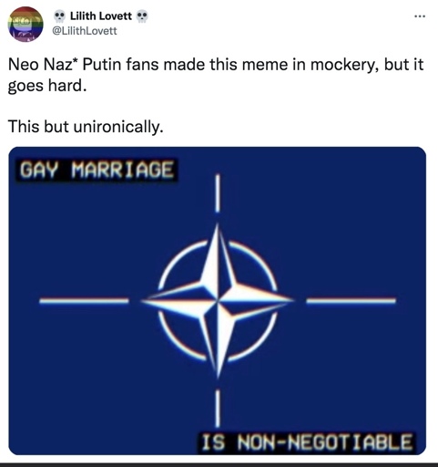 It’s Putin fans, so they’re probably saying NATO = homogay, and that’s bad.