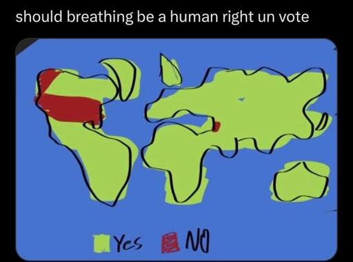 I’m honestly not even sure why they used the “breathing” as hyperbole, because this is based on an actual vote where all the other western nations voted yes rather than abstaining. The vote is on making food a human right. Since food is just as necessary to live as breathing, all this “hyperbole” does is convince people that the US isn’t actually this evil, which it literally is.