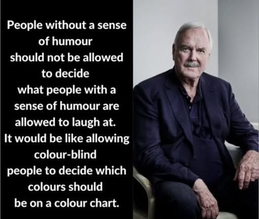 I thought it was because John Cleese is moderately racist and he’s talking about racist humour lol