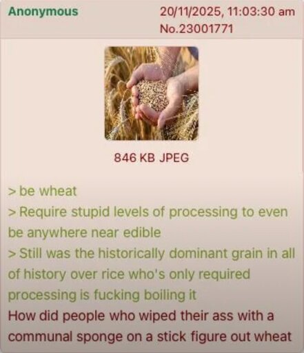 arrow-up1309arrow-down1imageAnon thinks about wheatsh.itjust.worksSine_Fine_Belli@lemmy.world to Science Memes@mander.xyzEnglish · 18 days agomessage-square64linkfedilinkfile-textcross-posted to: greentext@sh.itjust.works