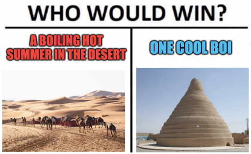 Explanation: In Persia and nearby regions, there is a long-lasting architectural tradition of ingeniously constructed icehouses that preserve or even produce ice in hot and arid climates. Slushie, anyone?