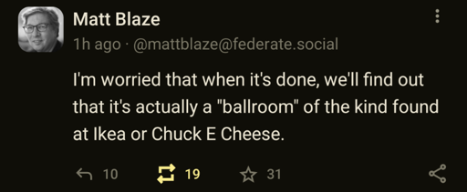 The point was the demolition, I’m not sure why but someone has been talking to Trump non-stop about the ballroom to do it