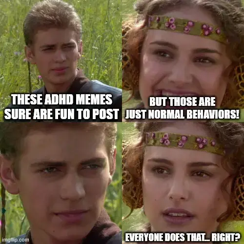 Stamets@lemmy.dbzer0.com to ADHD memes@lemmy.dbzer0.comEnglish · 27 days agoBased off of the numerous "WAIT WHAT" comments I see on my postslemmy.dbzer0.comimagemessage-square37linkfedilinkarrow-up1449arrow-down112