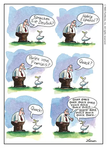 Sprechen sie Deutsch? / Habla Español? / Parlez vous Francais? / Quack? / Quack! /quack quack quack quack quack quack quack quack quack … / quack quack quack quack quack quack …