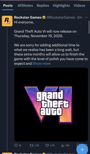 arrow-up129arrow-down1imageGTA 6 has been delayed AGAINpiefed.europe.pubcrunch@piefed.europe.pub to Gaming@lemmy.worldEnglish · 3 days agomessage-square10linkfedilink