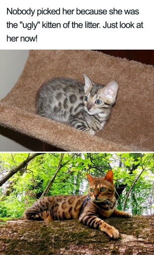 I agree. That’s not an ugly kitten by any means. Some people call my pet ugly cute but majority think cute. This is a regular kitten with a caption used to drive engagement.