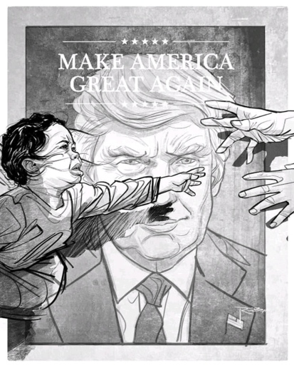 Even more relevant today… although we are way past separation now. I just love the Hitler mustache made by the child’s arm shadow. Great political work of art.