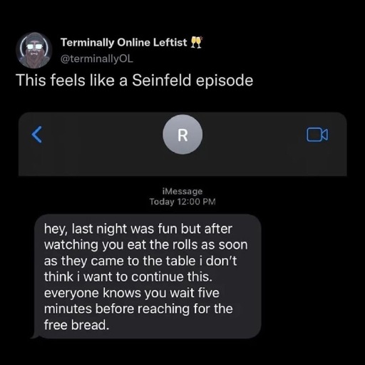 Dodged a bullet, etc., but still, why? What’s the thinking here as to why you should wait to start eating the bread?