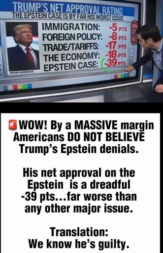 I’ve been pretty pessimistic that the Epstein files would actually have any consequences, but an image in my head was trump in a sweater walking past all these nails sticking out of the walls, each time passing one it’s forgotten for the next. Maybe this will be the nail that catches and undoes his sweater? Maybe with no more distractions the other stuff will finally catch up?