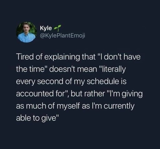 If your schedule is not actually fully booked you have the time, ADHD or not…you don’t have the energy, which is something entirely different, but also valid.