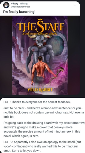 They went for that cover so they could make a post about how ‘gay’ it was and now people post it other places but cause it’s funny and now they get free advertising for their book.