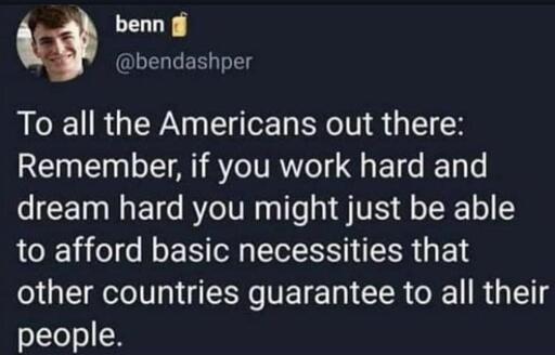 I think this is slightly unfair. I think if we Americans work hard we probably still won’t be able to afford basic necessities