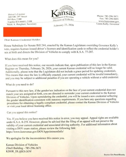 arrow-up1983arrow-down1imageTrans people in Kansas are being ordered to surrender their drivers licenseslemmy.worldandros_rex@lemmy.world to A Boring Dystopia@lemmy.world · 13 days agomessage-square270linkfedilink