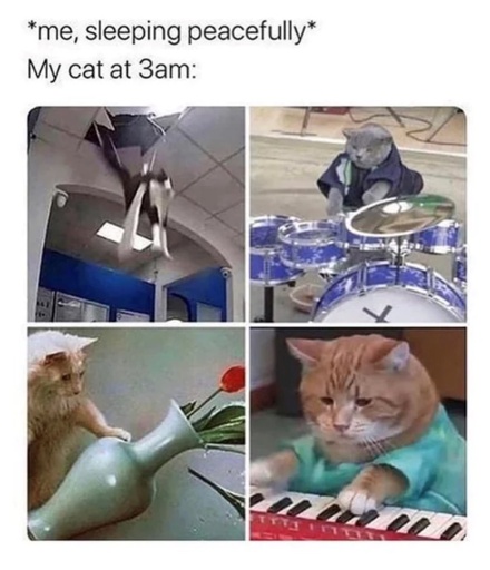 There are two types of cats: cats who quietly sleep at night and cats who do whatever they want but outdoors.