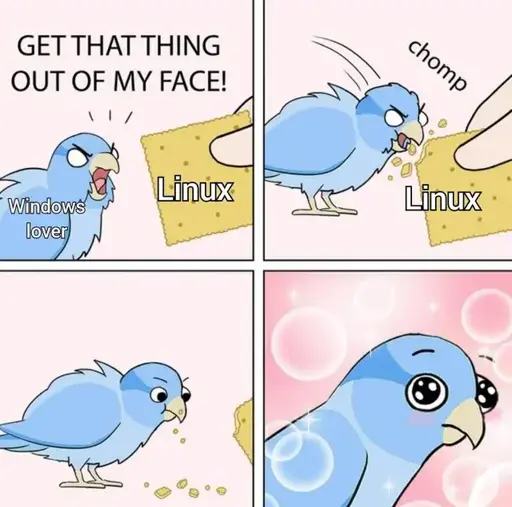 arrow-up11arrow-down1imageboolemmy.worldLinuxmemed@lemmy.world to linuxmemes@lemmy.world · 3 years agomessage-square0linkfedilink